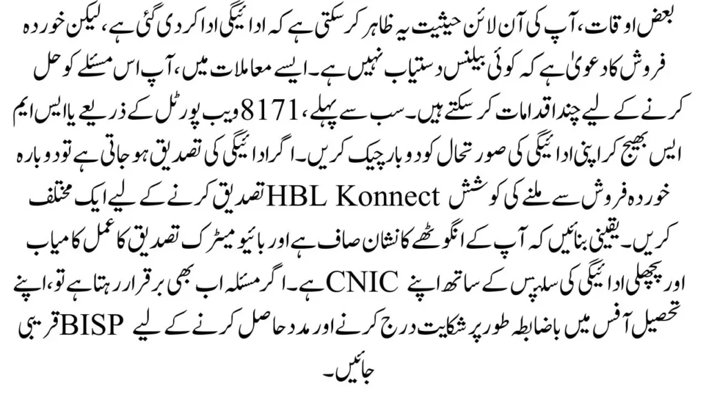 - If still unresolved, visit your nearest BISP tehsil office with your CNIC and previous payment slips to register a complaint.