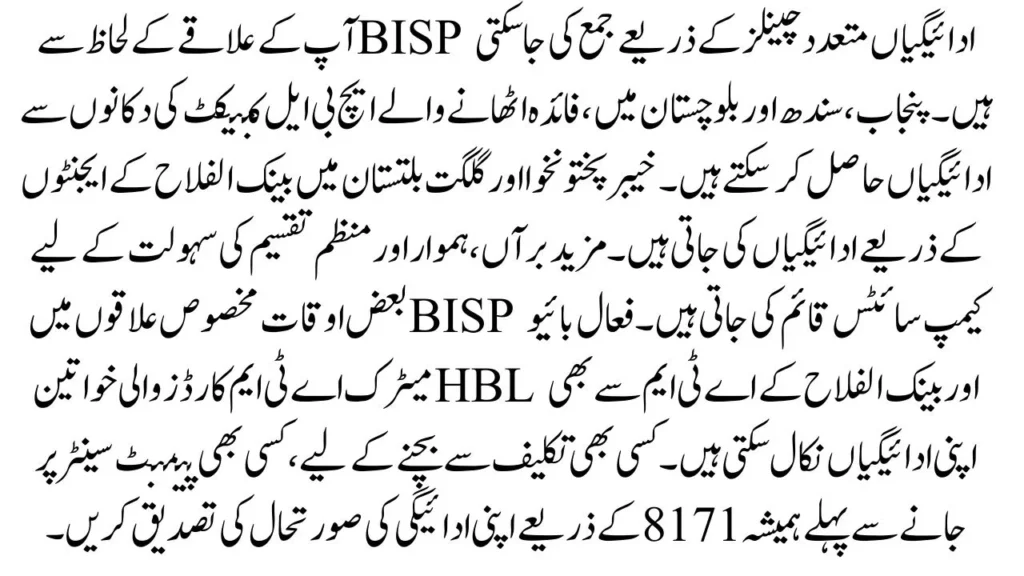 BISP payments can be collected through: